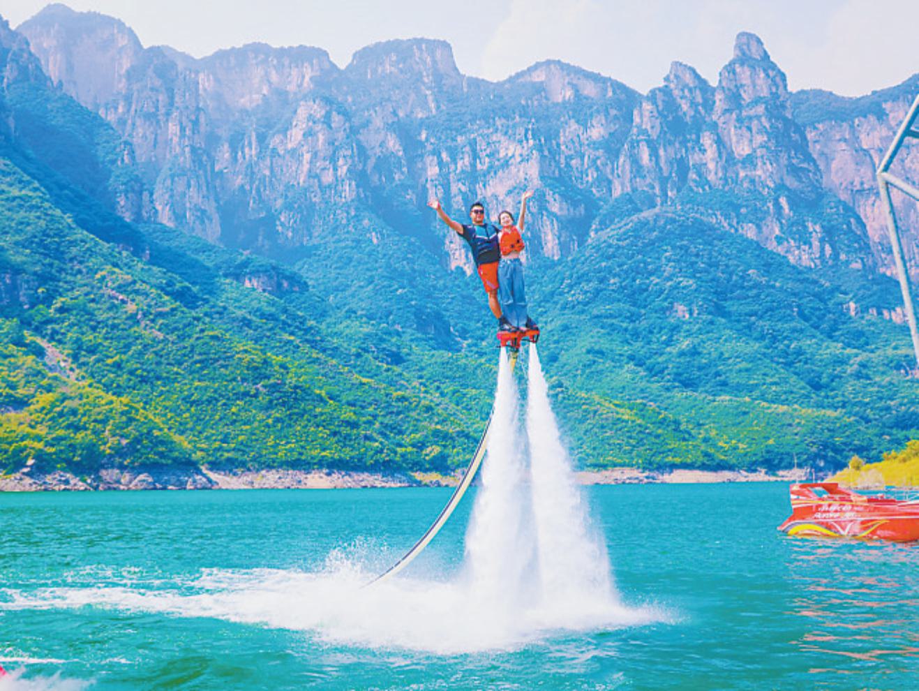 子房湖水上乐园则是一片欢乐的海洋。动感飞艇、水上飞人、快艇、帆船等项目轮番上阵。动感飞艇如离弦之箭,在水面上激起层层浪花,游客们的惊呼声与波浪声交织在一起。水上飞人腾空而起,在空中做出翻转、盘旋等高难度动作,引得游客发出阵阵惊叹。